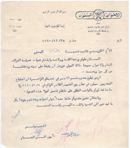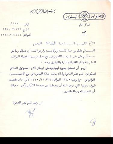 وثائق وبيانات جماعة الأخوان المسلمين في فلسطين رقم - 26