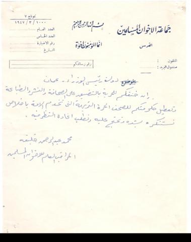 حول وثائق وبيانات جماعة الأخوان المسلمين في فلسطين رقم - 26