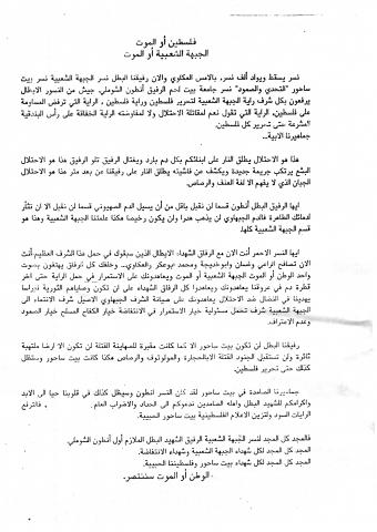 وثائق وبيانات الجبهة الشعبية لتحرير فلسطين رقم - 15