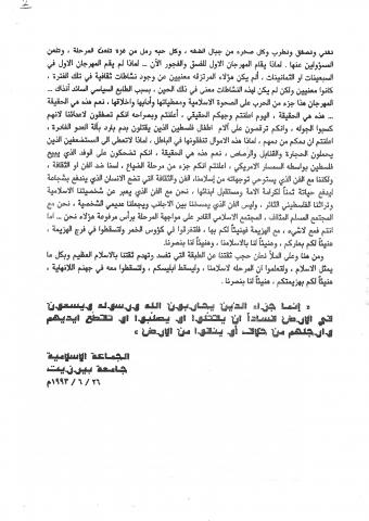 وثائق وبيانات الجماعة الأسلامية جامعة بير زيت - رقم - 3