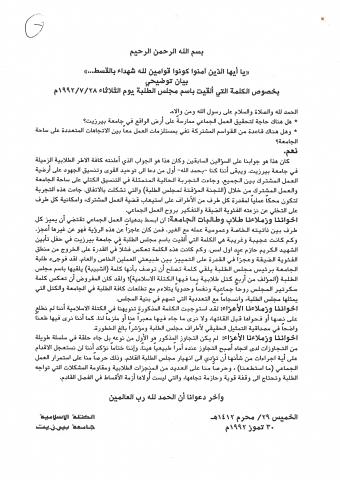 وثائق وبيانات الكتلة الأسلامية جامعة بير زيت - رقم - 48