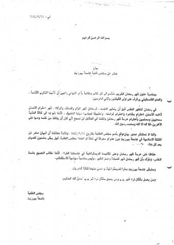وثائق وبيانات مجلس طلبة بيرزيت رقم - 3