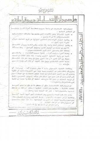 وثائق وبيانات الكتلة الأسلامية جامعة بير زيت - رقم - 44