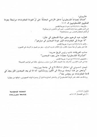 حول وثائق وبيانات الكتلة الأسلامية جامعة بير زيت - رقم - 18