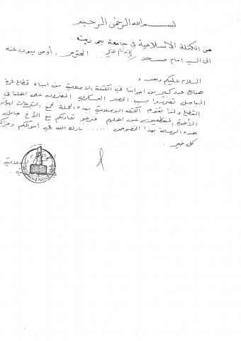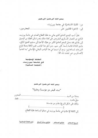 وثائق وبيانات الكتلة الأسلامية جامعة بير زيت - رقم - 15