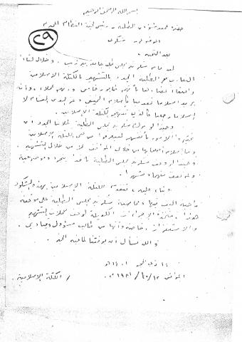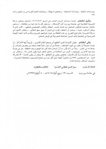 وثائق وبيانات الكتلة الأسلامية جامعة بير زيت - رقم - 19