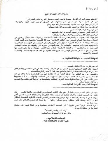 وثائق وبيانات الجماعة الأسلامية جامعة بيت لحم رقم - 2