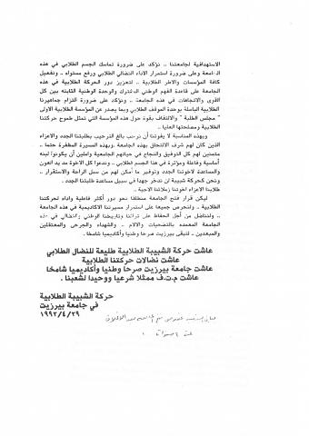 وثائق وبيانات حركة الشبيبة الطلابيةفي جامعة بيرزيت - رقم - 3