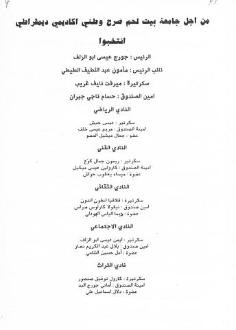 وثائق وبيانات كتلة منظمة التحرير جامعة بيت لحم رقم - 1