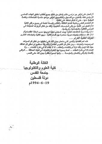 وثائق وبيانات الكتلة الوطنية جامعة القدس- كلية العلوم والتكنولوجيا رقم - 2