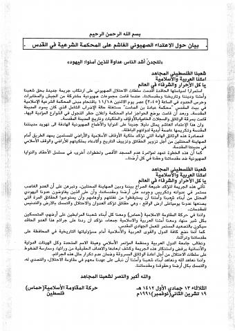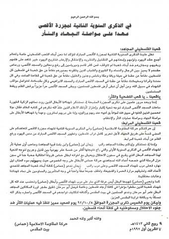 وثائق وبيانات حركة المقاومة الاسلامية حماس رقم - 148