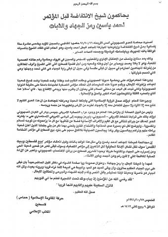 حول وثائق وبيانات حركة المقاومة الاسلامية حماس رقم - 148
