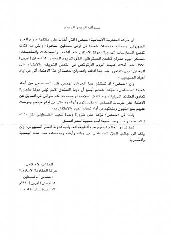 وثائق وبيانات حركة المقاومة الاسلامية حماس رقم - 141