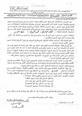 حول بيانات حركة المقاومة الأسلامية حماس - بيان رقم - 23