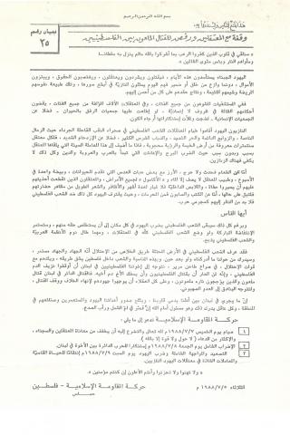 حول بيانات حركة المقاومة الأسلامية حماس - بيان رقم - 25